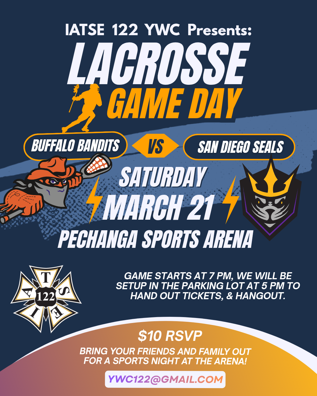 The Young Workers Committee is hosting a night at the San Diego Sports Arena for Lacrosse. Please join us for a night of fun and competition. Please RSVP and get your tickets today. We will see you on March 21st!